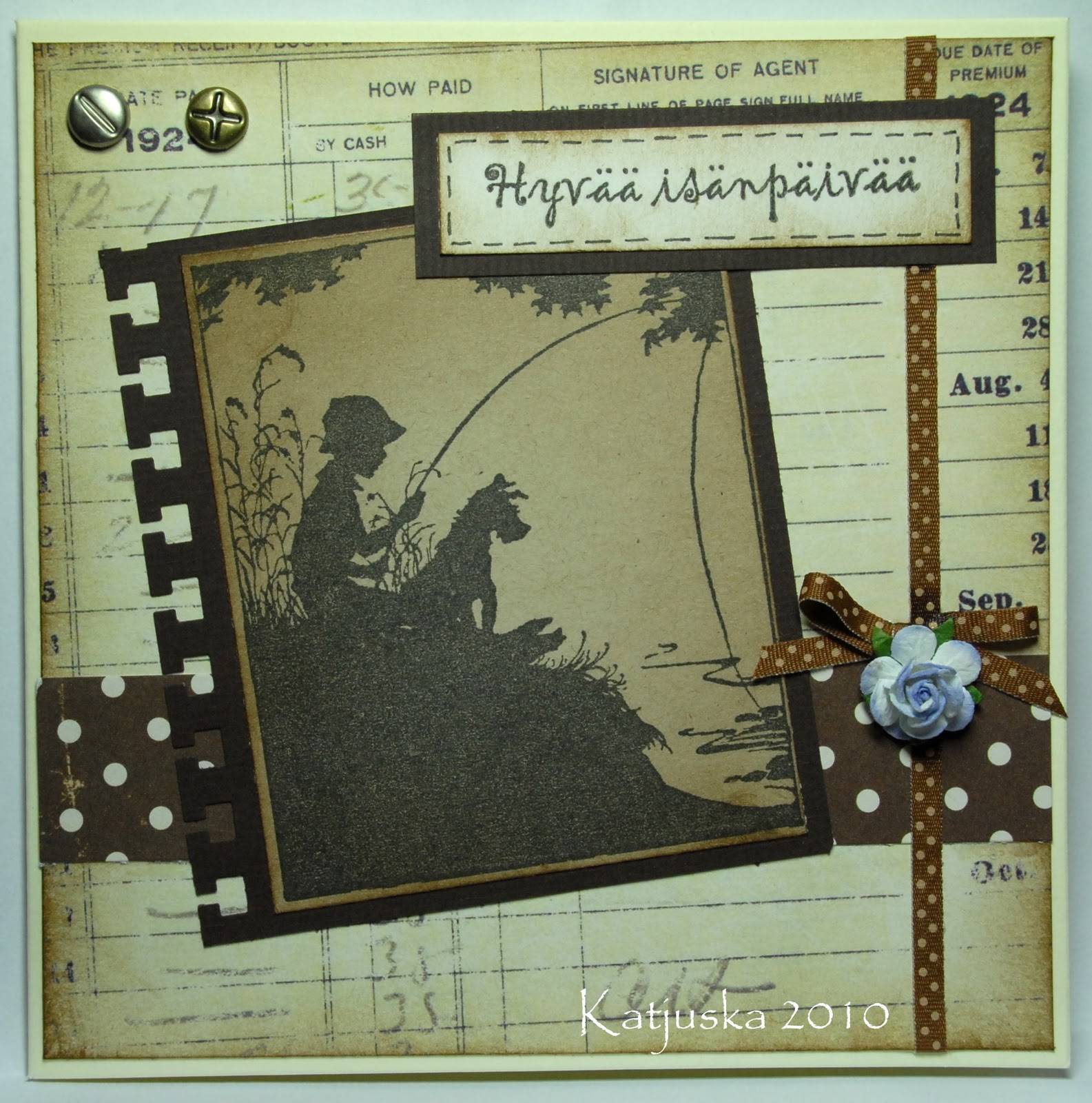 Heips, tässä vielä vuoden viimeinen kortti esille.......hääkorttia siis pukkaa, toiveena oli että kalastus näkyisi hääkortissa jollakin tapaa ja värimaailma olisi ruskea......